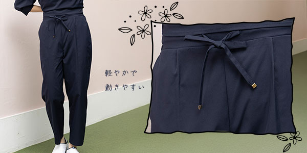 少しゆるめのテーパードシルエットなので、長時間動き回っても圧迫感がなく、1日中動き続けてもストレスなく快適に過ごせます。