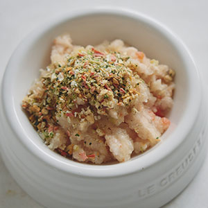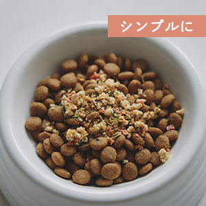 ふりかけ1粒は4mm以下の極小粒サイズ。どんな犬種・年齢の子でも食べやすく消化吸収の負担がかからない大きさに仕上げました。